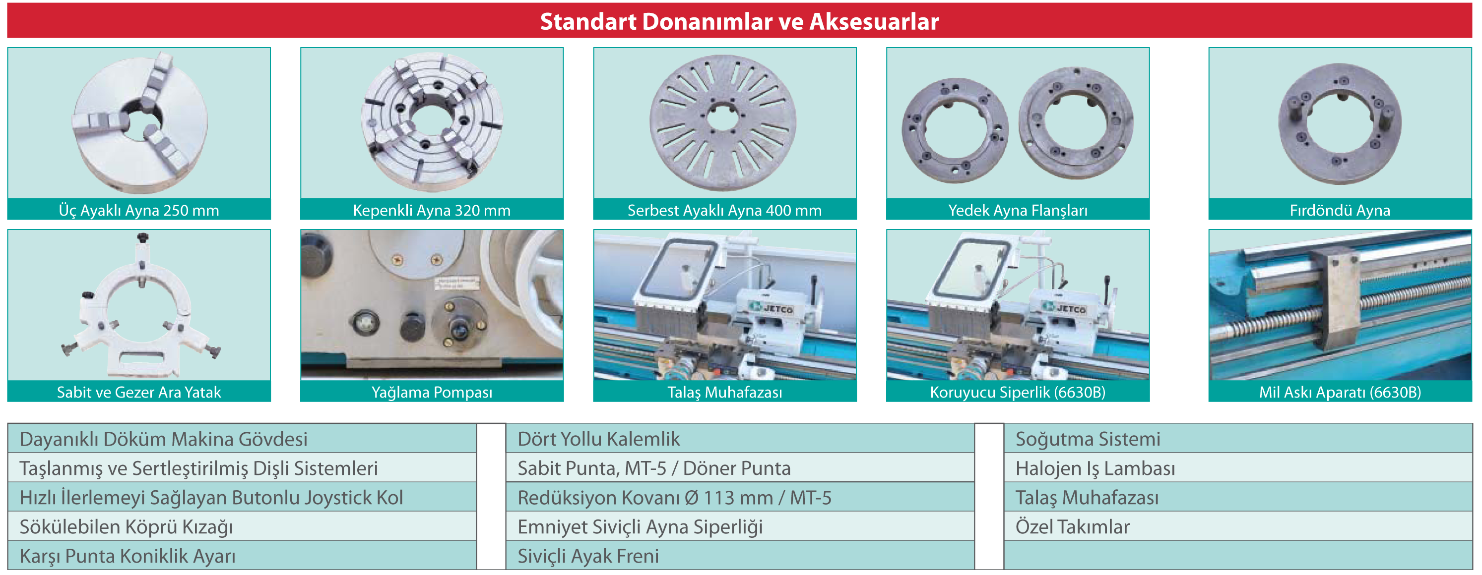 Jetco JML 6630B Üniversal Torna Standart Aksesuarlar